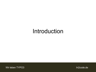 Die TYPO3 & in2code Codingguidelines definieren die Struktur und Formatierung von TYPO3-Code, um dessen Lesbarkeit und Sicherheit zu gewährleisten, insbesondere in Teamarbeit. Sie bieten keine technischen Informationen, ermöglichen jedoch ein schnelles Verständnis unbekannten Codes und fördern eine skalierbare Erweiterung. Die Guidelines enthalten Empfehlungen zu sinnvollen Namensgebungen, der Verwendung von Templates, der Handhabung von Datenbankabfragen und den allgemeinen Stilrichtlinien für PHP-Code.