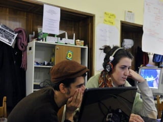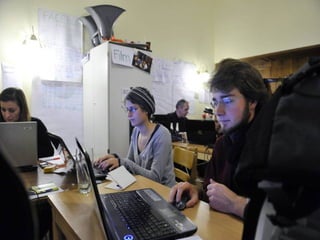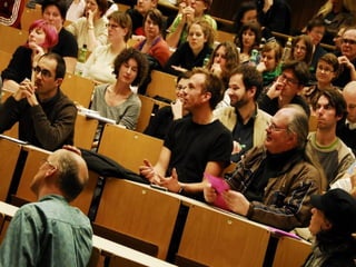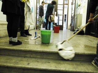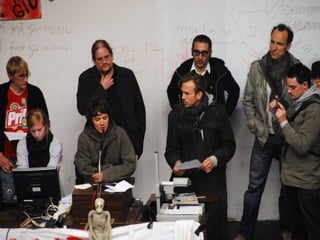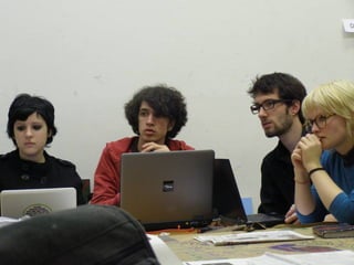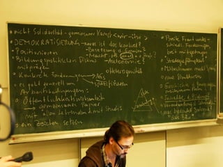 Das Dokument beschreibt die Arbeitsweise von Unibrennt und verschiedene Bereiche der selbstverwalteten Universität. Es erwähnt mehrere AGs, darunter eine Müllkolonne, sowie Medienformate wie Online- und Livestream-Angebote. Außerdem wird auf Führungen und offene Türen hingewiesen.