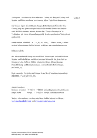 Der Mercedes-Benz Unimog wurde mit einem großvolumigen Laubsauger ausgestattet, um Laub von Straßen und Grünflächen zu entfernen und so die Sicherheit im Straßenverkehr zu gewährleisten. Die Mitarbeiter des Baubetriebshofs Gerlingen haben bis Ende November diesen Dienst geleistet, bevor der Unimog für den Winterdienst umgerüstet wurde. Das Fahrzeug kann auch für andere Reinigungsarbeiten wie das Leersaugen von Papierkörben verwendet werden.
