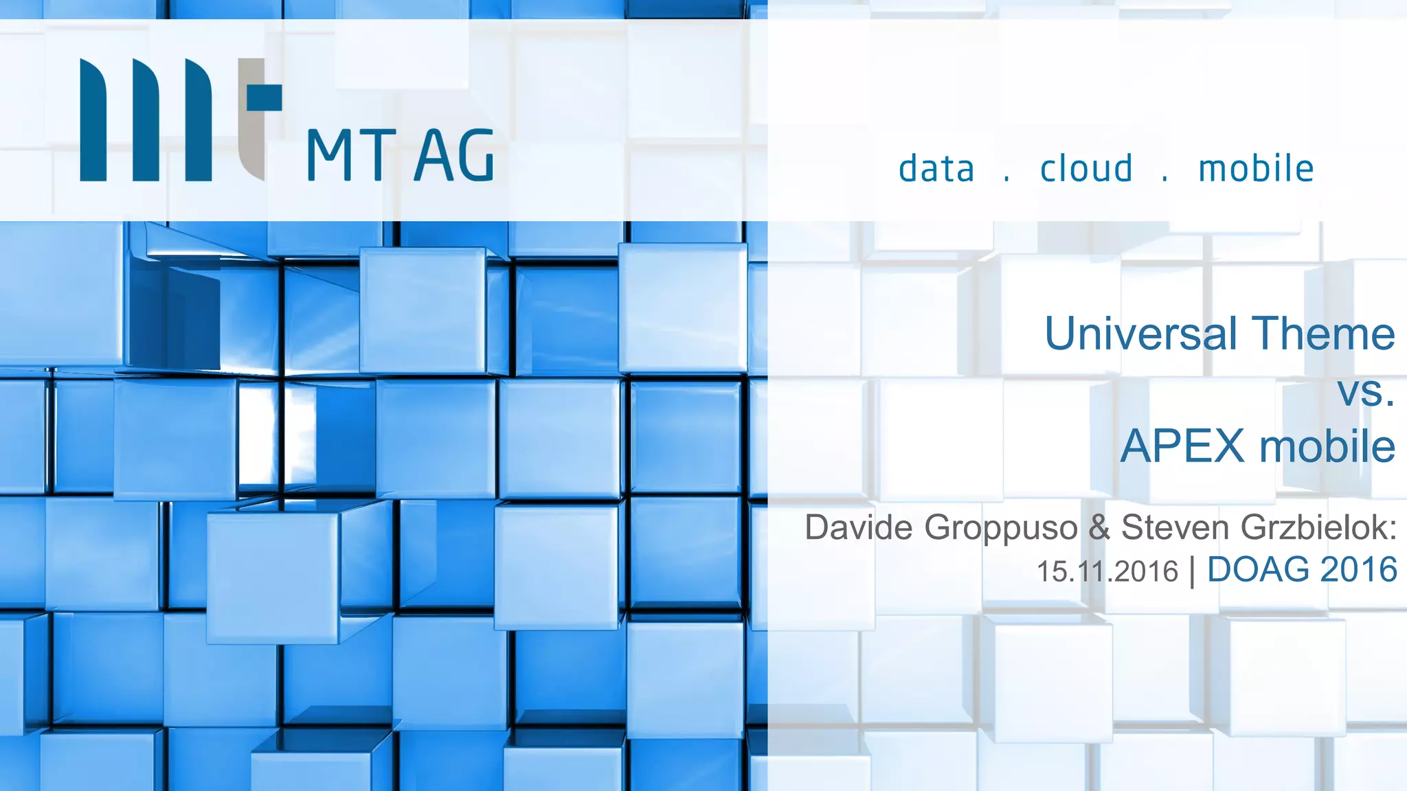Die Präsentation behandelt den Vergleich zwischen dem Universal Theme und Apex Mobile in der Oracle APEX-Entwicklung. Sie beleuchtet die Vorteile mobiler Anwendungen, die Anforderungen an IT-Abteilungen sowie die Unterschiede in der Benutzererfahrung und den Designmöglichkeiten der beiden Themes. Abschließend wird die Empfehlung ausgesprochen, je nach Anwendungsfall zwischen dem Universal Theme, das für eine Vielzahl von Geräten geeignet ist, und Apex Mobile, spezialisiert auf mobile Geräte, zu wählen.