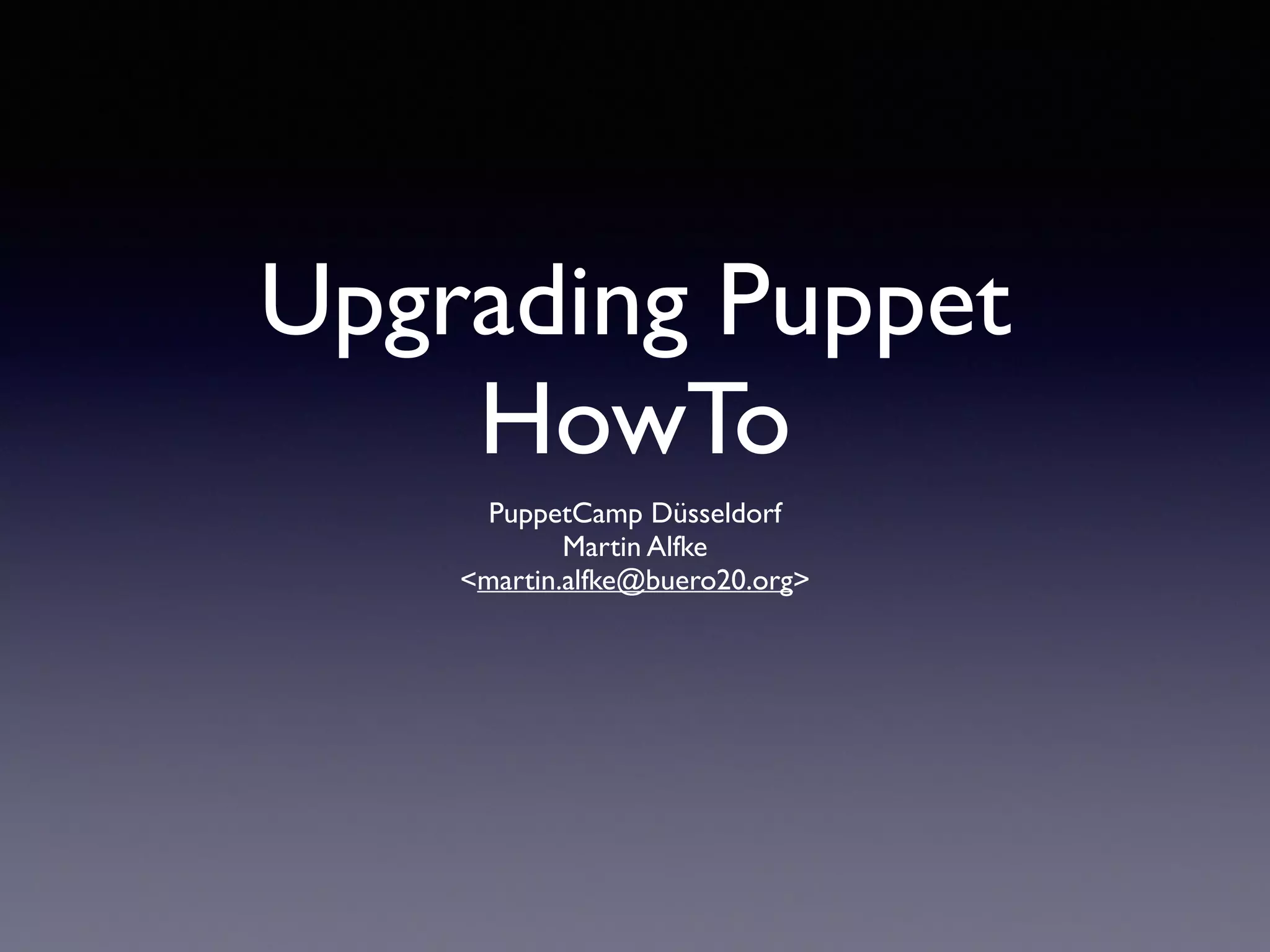 Die Präsentation von Martin Alfke bei PuppetCamp in Düsseldorf thematisiert die Notwendigkeit und die Vorgehensweise beim Upgrade von Puppet, einschließlich der Vorteile neuer Funktionen, Sicherheitsupdates und Best Practices. Besondere Aufmerksamkeit gilt der Kompatibilität des alten Puppet DSL Codes mit der neuen Version und der Notwendigkeit, Best Practices zu befolgen, um die Upgradefähigkeit von Modulen zu gewährleisten. Zukünftige Änderungen in Puppet 4 werden ebenfalls angesprochen, darunter die Abschaffung veralteter Funktionen und die Einführung neuer Features.