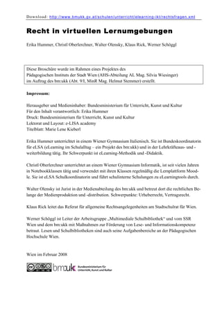 Die Broschüre bietet eine umfassende Anleitung zu rechtlichen Aspekten in virtuellen Lernumgebungen, einschließlich Datenschutz, Datensicherheit und Urheberrecht. Sie richtet sich an Lehrerinnen, Lehrer und Schulen und erklärt die geltenden gesetzlichen Vorgaben sowie praktische Hinweise für den Umgang mit E-Learning-Inhalten. Besonderes Augenmerk wird auf die rechtlichen Rahmenbedingungen für geschlossene Lerngruppen und die Veröffentlichung von Inhalten im Internet gelegt.