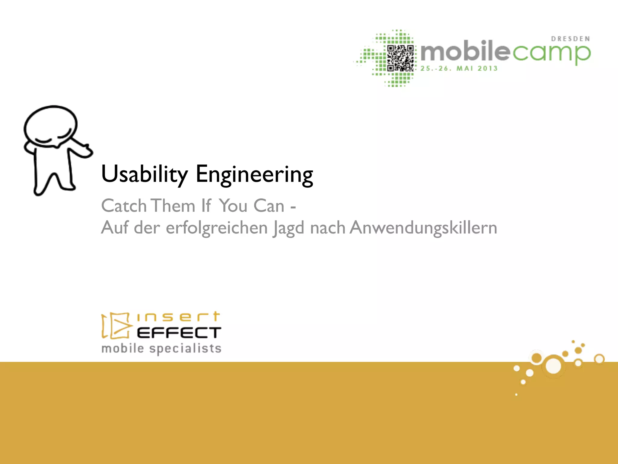 Das Dokument behandelt die Herausforderungen und Fehler im Usability Engineering für mobile Anwendungen und Webseiten, insbesondere im Kontext des DFB-Pokals. Es beschreibt Strategien zur Fehlerbehebung und Methoden wie Benutzerbefragungen und heuristische Evaluierungen, um die Benutzerfreundlichkeit zu verbessern. Zudem werden spezifische Probleme und Lösungen für die Webseiten- und App-Navigation erläutert.