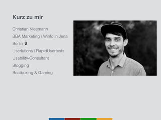 Das Dokument behandelt die Bedeutung von Usability im E-Commerce und verdeutlicht, dass viele Onlineshops trotz interessanter Produkte an schlechten Nutzungserfahrungen leiden, was zu Abbrüchen im Kaufprozess und niedrigeren Umsätzen führt. Es werden zentrale Prinzipien für eine verbesserte Benutzerführung genannt, darunter die Reduktion von Komplexität, das Hervorheben wichtiger Informationen und die Berücksichtigung von Nutzererwartungen. Abschließend wird betont, dass gute Web-Usability auf Empathie und explorativer Vorgehensweise basiert, anstatt auf abgedroschenen Konzepten.