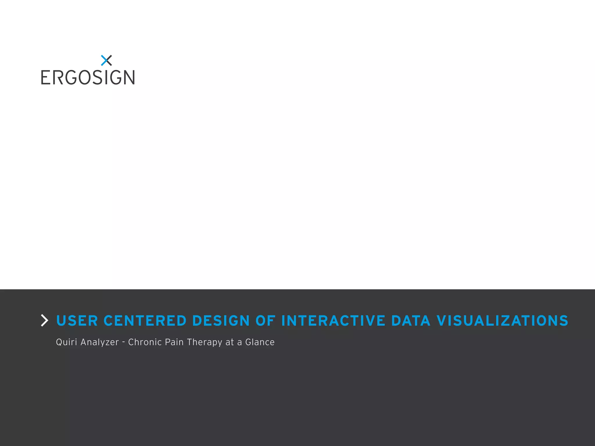 Das Dokument beschreibt den nutzerzentrierten Designprozess des Quiri-Analyzers, einem interaktiven Datenvisualisierungstool für die Schmerztherapie. Es wird hervorgehoben, wie wichtig eine positive Benutzererfahrung ist, um genauere Diagnosen und effektivere Behandlungen zu ermöglichen. Zudem wird auf die wirtschaftliche Dimension chronischer Schmerzen eingegangen, die erhebliche Kosten verursacht und die Notwendigkeit verbessert, Daten zu visualisieren und Patienten aktiv in die Therapie einzubeziehen.