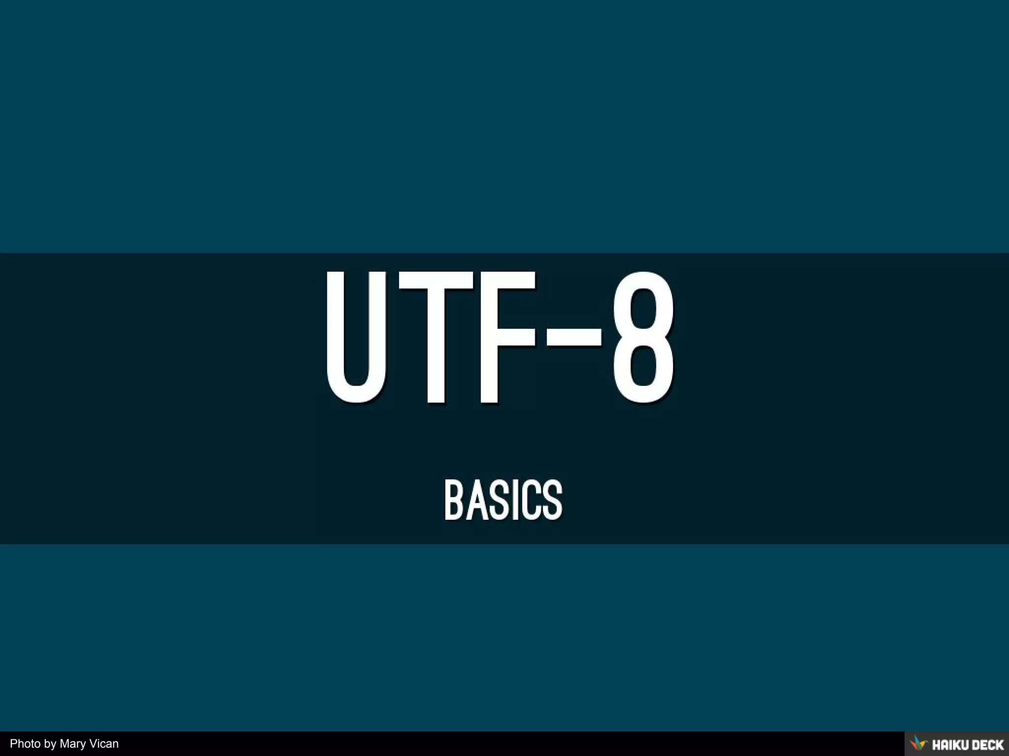 Das Dokument behandelt die Grundlagen der Zeichencodierungen ASCII und UTF-8, deren Unterschiede und Anwendungen. Es beschreibt die binäre Darstellung von Zeichen, die Probleme bei der Verwendung von Sonderzeichen sowie die Notwendigkeit, UTF-8 in verschiedenen Kontexten wie Datenbanken und Entwicklertools zu verwenden. Zuletzt werden Lösungen zur Problembewältigung in PHP und Datenbanken vorgestellt.