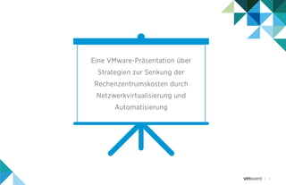 Das Dokument beschreibt die Bedeutung der Netzwerkvirtualisierung und Automatisierung für erfolgreiche Rechenzentrumstrategien, da diese Technologien helfen, Engpässe im Netzwerk zu beseitigen und die Bereitstellung von IT-Ressourcen erheblich zu beschleunigen. VMware NSX und vRealize Automation werden als Schlüsseltechnologien hervorgehoben, die Unternehmen ermöglichen, ihre Netzwerkinfrastruktur effizient zu verwalten und agil zu reagieren, wodurch sowohl Investitions- als auch Betriebskosten gesenkt werden. Letztlich führt die Kombination aus Virtualisierung und Automatisierung zu optimierten und automatisierten Rechenzentrumsbetrieben, die Wettbewerbsvorteile für Unternehmen schaffen.