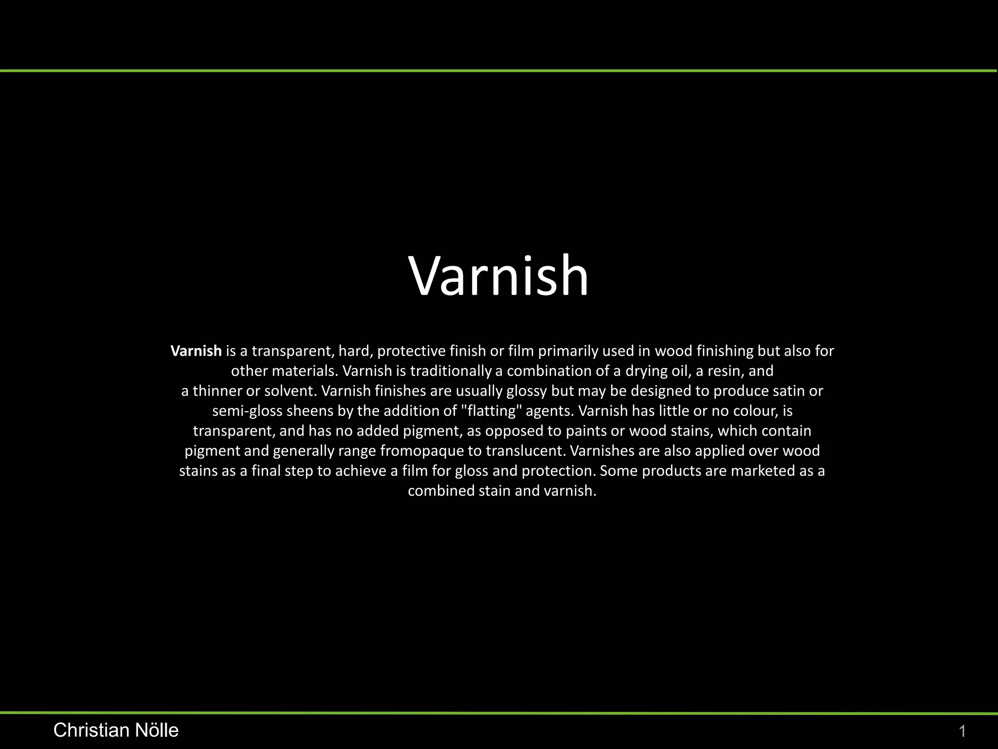Varnish ist eine transparente, harte Schutzbeschichtung, die hauptsächlich für Holzoberflächen verwendet wird, aber auch für andere Materialien geeignet ist. Bei Varnish handelt es sich traditionell um eine Kombination aus Trockenöl, Harz und Verdünner, die glatte, glänzende oder matte Oberflächen erzeugt. Darüber hinaus wird Varnish auch als Software für Server-Cache-Management verwendet, wobei spezifische Konfigurationen und Caching-Regeln über die Varnish Configuration Language (VCL) definiert werden.