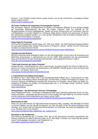Der Newsletter des VDC Fellbach im Februar 2008 informiert über bevorstehende Fachkongresse und aktuelle Entwicklungen im Bereich Virtual Engineering, insbesondere in der Medizintechnik und dem Designprozess. Er hebt auch den Bedarf an mehr Weiterbildung für Maschinenbauunternehmen hervor und diskutiert innovative Technologien und Kooperationsprojekte in der virtuellen Realität. Zudem werden wichtige Termine und Ereignisse im Zusammenhang mit Virtual Engineering angekündigt.