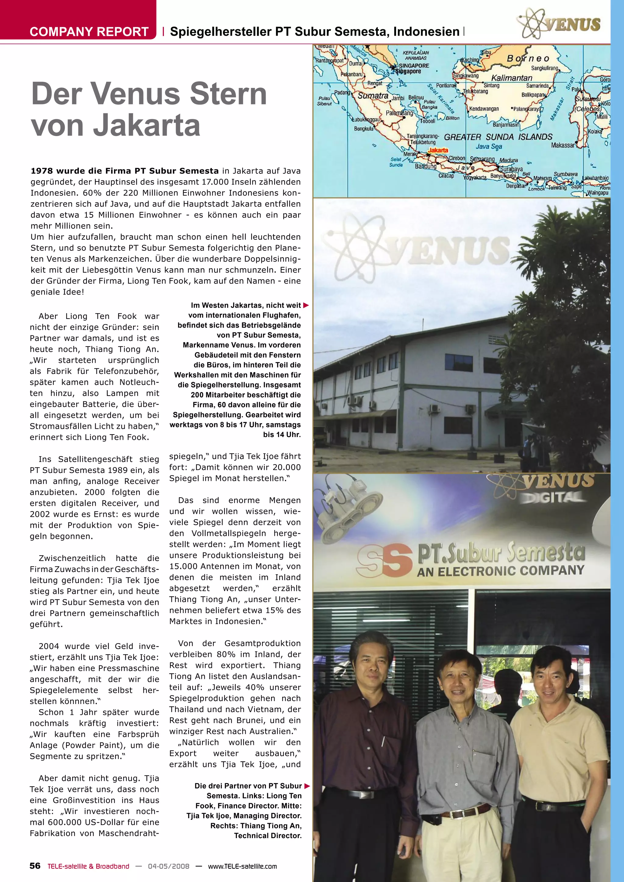 Die PT Subur Semesta wurde 1978 in Jakarta, Indonesien, gegründet und ist auf die Herstellung von Spiegeln und Satellitenreceivern spezialisiert, wobei etwa 80% ihrer Produktion im Inland abgesetzt werden. Mit kontinuierlichen Investitionen in Technologie und Qualitätsstandardierung, einschließlich der ISO-Zertifizierung, hat das Unternehmen seine Produktionskapazitäten seit 2000 erheblich gesteigert. Die Firma plant, ihren Exportanteil weiter auszubauen und sich international erfolgreich im Markt für hochwertige Spiegel und Elektronikprodukte zu positionieren.