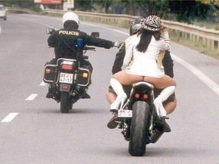 Das Dokument thematisiert eine Verkehrskontrolle und fragt, warum ein Motorradfahrer angehalten werden sollte. Es wird darauf hingewiesen, dass die Beifahrerin im Bild keinen Helm trägt. Die Aufforderung, ehrlich zu reflektieren, zielt darauf ab, auf die Sicherheitsaspekte im Straßenverkehr aufmerksam zu machen.