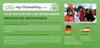 Die mg itconsulting gmbh bietet professionelle Videoproduktionen an, die emotionale Verbindungen zu Produkten und Marken schaffen. Laut einer Studie halten 45 Prozent der deutschen Internetnutzer Videos für einen notwendigen Bestandteil zeitgemäßer Webseiten, da sie Informationen lebendig und prägnant vermitteln. Das Unternehmen bietet umfassende Leistungen von der Konzeptentwicklung bis zur finalen Videoausgabe zu Preisen ab 2.000 Euro zuzüglich MwSt an.