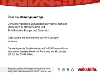 Eine Meinungsumfrage des Volkshilfe Sozialbarometers zeigt, dass 74% der Befragten in Österreich Roma und Sinti als von Verfolgung und rassistischer Gewalt betroffen ansehen. Zudem befürworten 59% unterstützende Maßnahmen, wobei die Zustimmung unter Frauen mit 63% etwas höher ausfällt.