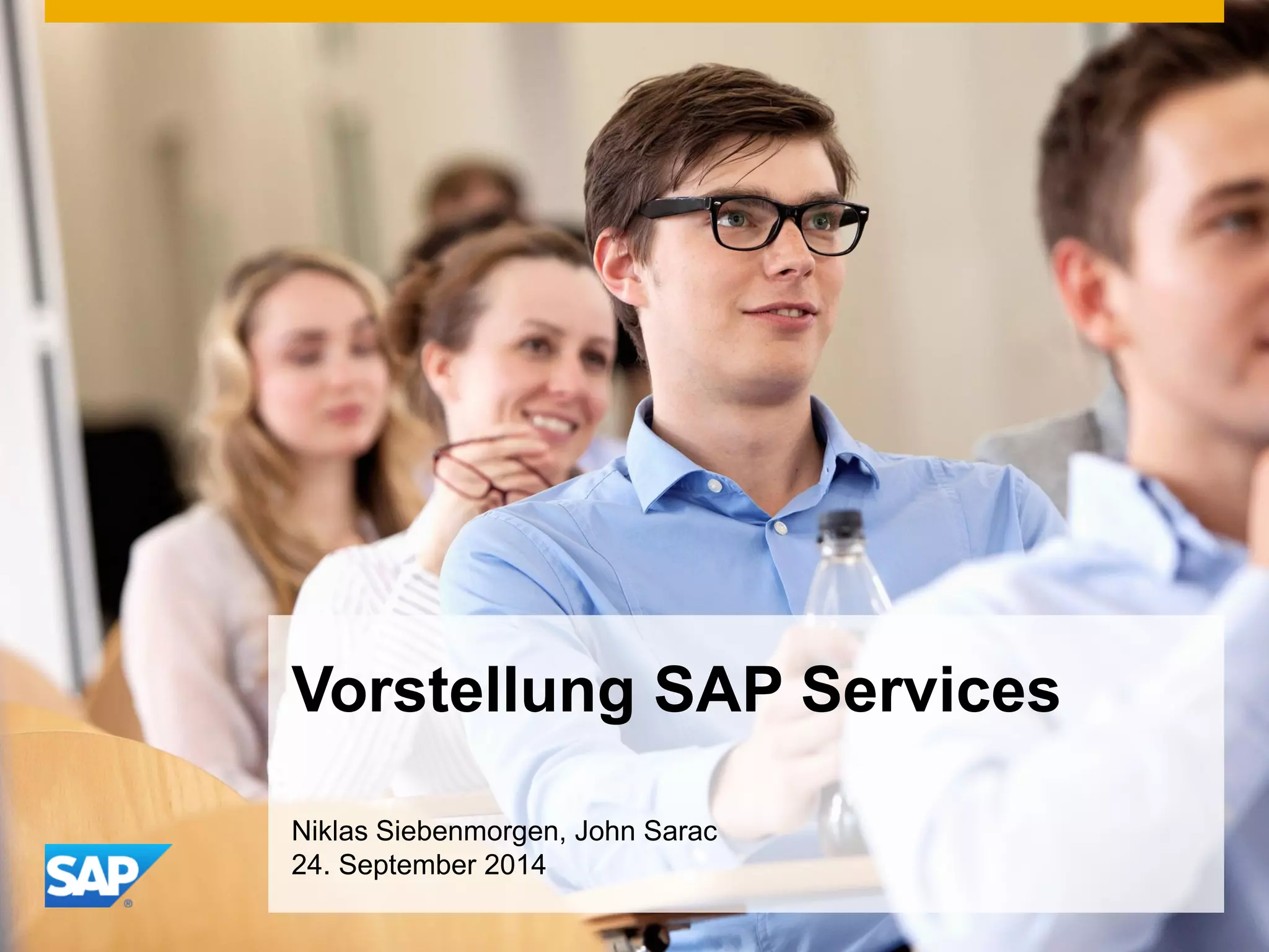 SAP, gegründet 1972, ist Marktführer im Bereich Unternehmenssoftware mit 66.750 Mitarbeitern und einem Umsatz von 16,9 Milliarden Euro im Jahr 2013. Das Unternehmen bietet ein umfangreiches Serviceportfolio zur Umsetzung von SAP-Lösungen und unterstützt über 258.000 Kunden in 120 Ländern in verschiedenen Branchen. Zukünftige Ziele beinhalten eine Umsatzsteigerung auf über 20 Milliarden Euro und den Aufbau eines 2-Milliarden-Euro-Cloud-Geschäfts bis 2015.
