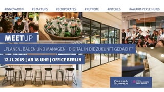 Das Dokument beschreibt eine Initiative von Drees & Sommer, die ein Ökosystem für Startups und Unternehmen im Immobilienbereich schafft, um digitale Innovationen voranzutreiben. Es werden Programme wie internationale Startup-Akzeleratoren und Hackathons angeboten, um kreative Lösungen und Partnerschaften zu fördern. Die Ansprechpartner in Berlin sind Markus Weigold und Martin Pietzonka, die beide in Führungspositionen bei Drees & Sommer tätig sind.