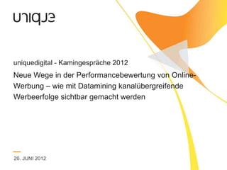 Das Dokument diskutiert die Entwicklung neuer Ansätze zur Performancebewertung von Online-Werbung, insbesondere durch die Anwendung dynamischer Attributionsmodelle, die den Einfluss verschiedener Kanäle auf den Kaufentscheidungsprozess der Nutzer quantifizieren. Es wird argumentiert, dass traditionelle Modelle wie Last-Click die Realität verzerren, was zu einer suboptimalen Budgetallokation führt. Praxisbeispiele veranschaulichen die Vorteile eines dynamischen Ansatzes im Cross-Channel Management durch präzisere Leistungsanalysen.