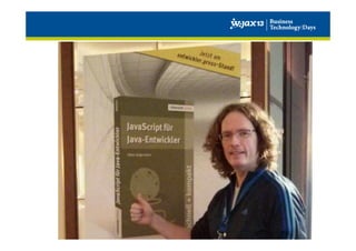 Das Dokument thematisiert Vorurteile gegen JavaScript im Vergleich zu Java und beleuchtet die Fortschritte sowie Möglichkeiten von JavaScript für die Entwicklung großer Anwendungen. Es werden Best Practices, Werkzeuge und moderne Entwicklungsansätze vorgestellt, die JavaScript zu einer konkurrenzfähigen Sprache machen. Abschließend wird diskutiert, wie deklarierte Typen die IDE-Unterstützung verbessern können und ob JavaScript für große, wartbare Projekte geeignet ist.