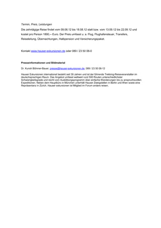 Hauser Exkursionen bietet eine zehn-tägige Wanderreise auf der Krim vom 09. bis 18. August 2012 und vom 13. bis 22. September 2012 an, welche zum Preis von 1890 Euro pro Person erhältlich ist. Die Reise umfasst Sehenswürdigkeiten wie Jalta, den Khan-Palast in Bachtschisaraj sowie die Besteigung des Aj-Petri und Aufenthalte in landestypischen Hotels. Die Teilnehmer genießen vielfältige Landschaften, das milde Klima und eine Einführung in die lokale Weinproduktion, während sie in der Tradition des Hochadels und der Künstler übernachten.