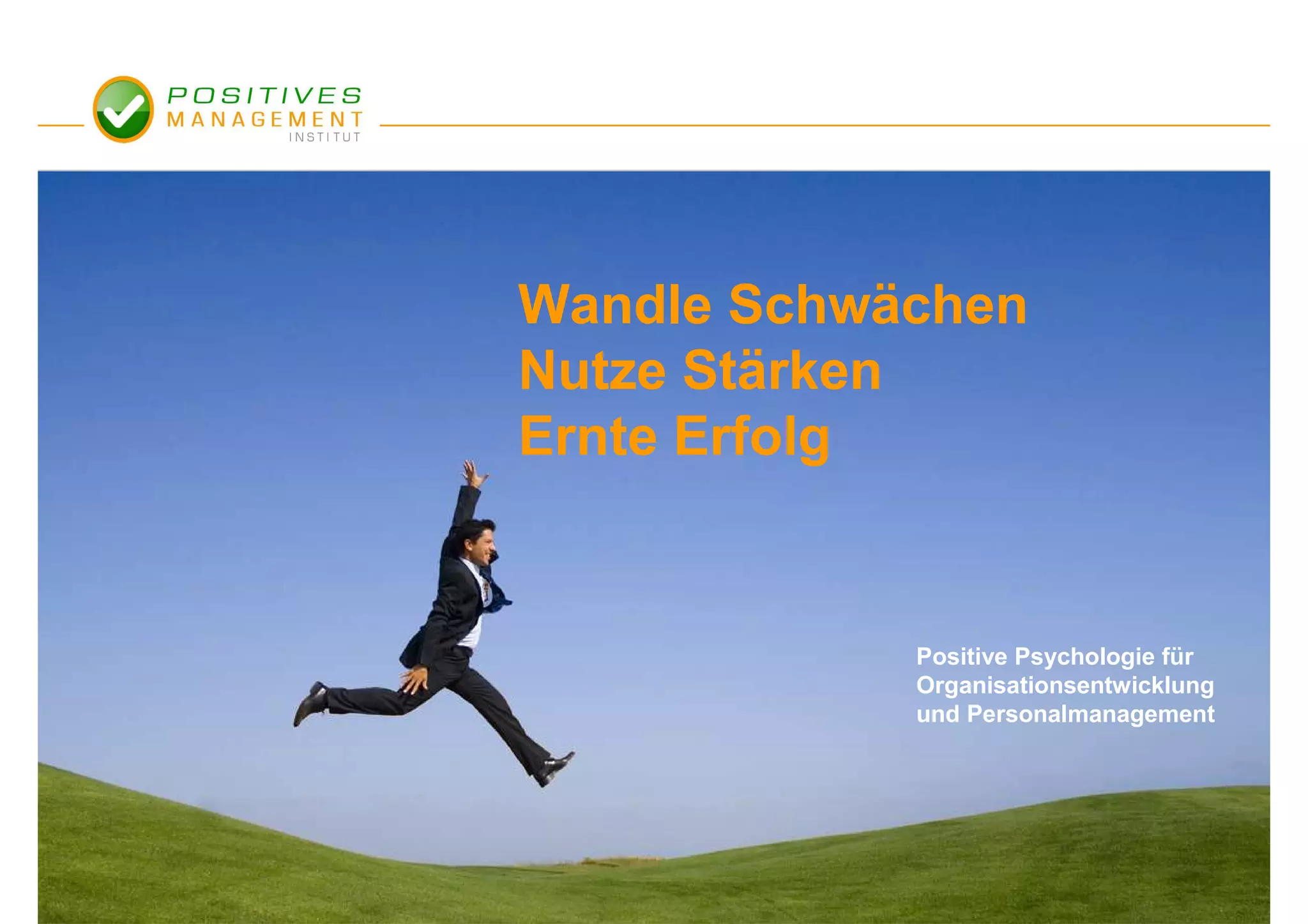 Das Dokument behandelt die Konzepte der positiven Psychologie in der Organisationsentwicklung und im Personalmanagement, indem es die Stärkung von positiven Emotionen und persönlichen Fähigkeiten betont. Statt sich auf Schwächen zu konzentrieren, wird vorgeschlagen, Stärken zu erkennen und zu nutzen, um Mitarbeiterengagement und Leistung zu fördern. Es wird auch auf die Herausforderungen am Arbeitsplatz eingegangen und auf die Notwendigkeit, positive Aspekte und Ressourcen innerhalb von Teams und Organisationen hervorzuheben.