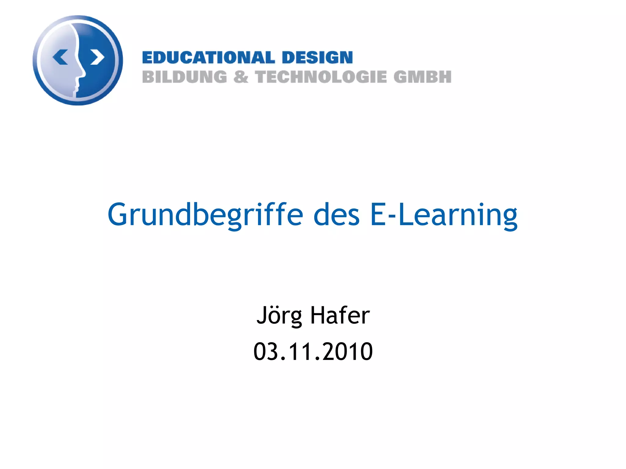 E-Learning ist ein sich ständig weiterentwickelndes Konzept ohne allgemeingültige Definition, das Potenziale wie Individualisierung des Lernens, Kommunikation über Distanzen und verbesserte Zusammenarbeit bietet. Es besteht eine Differenzierung zwischen Lehren und Lernen, wobei auch e-teaching als zentrale Komponente hervorgehoben wird. Verschiedene E-Learning-Formate und -Werkzeuge werden vorgestellt, darunter computergestütztes Lernen, web-basiertes Training und blended learning.