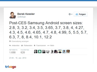 Die Präsentation von Christoph Reinartz diskutiert die Prinzipien des responsiven Webdesigns und betont die Notwendigkeit, dass Websites auf verschiedenen Geräten gut funktionieren. Wichtige Aspekte sind flexible Layouts, relative Maße und die Verwendung von Media Queries, um die Darstellung auf unterschiedlichen Bildschirmgrößen anzupassen. Abschließend wird die Bedeutung von Prototyping und der Fokus auf die Benutzererfahrung hervorgehoben, um kostspielige Fehler und erhöhten Wartungsaufwand zu vermeiden.
