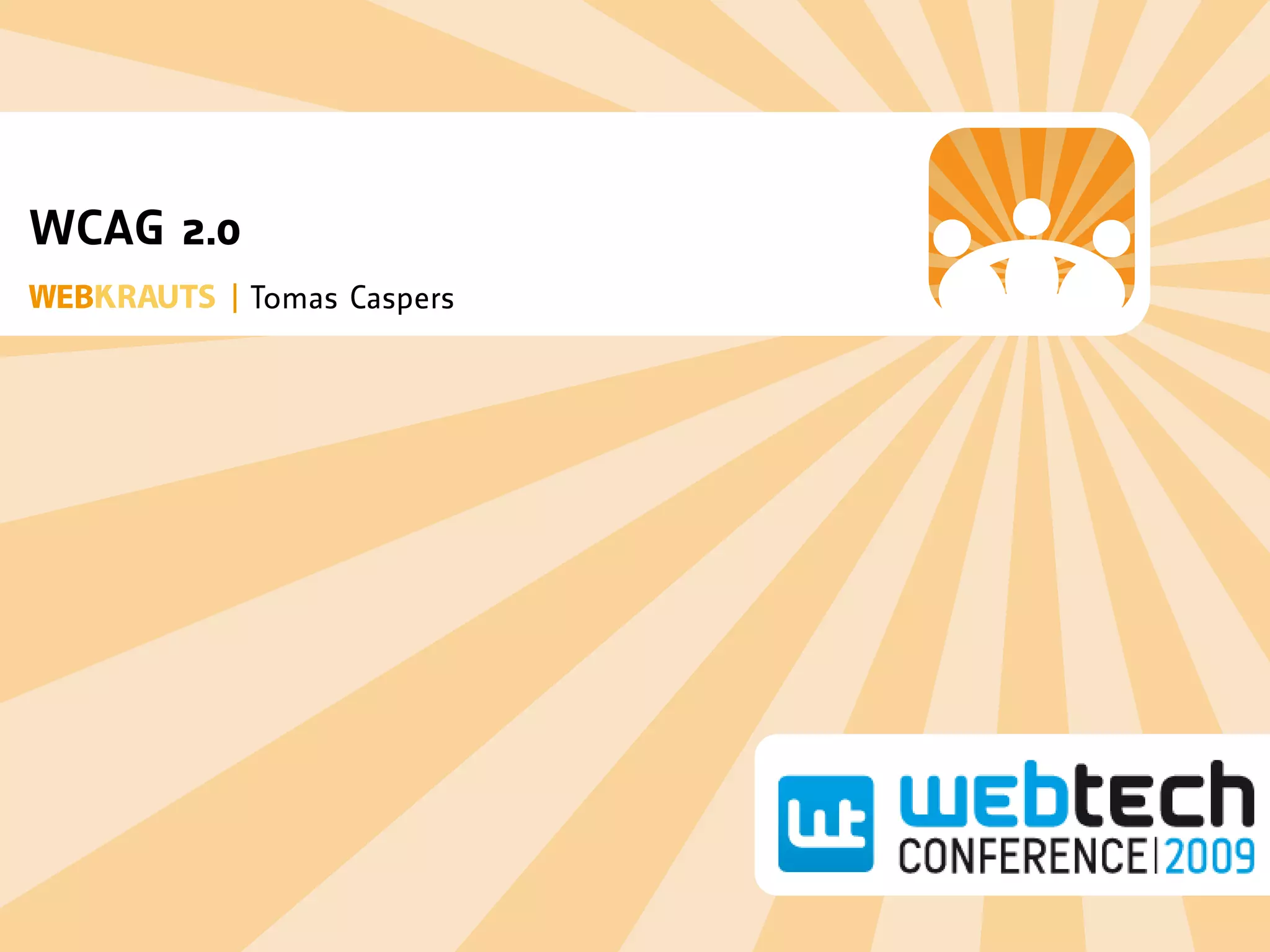 Das Dokument behandelt die Barrierefreiheit im Web gemäß den WCAG (Web Content Accessibility Guidelines), insbesondere den Unterschied zwischen WCAG 1.0 und WCAG 2.0. Es werden rechtliche Rahmenbedingungen in den USA, Großbritannien und Deutschland aufgeführt, sowie die vier zentralen Prinzipien der Barrierefreiheit: Wahrnehmbarkeit, Bedienbarkeit, Verständlichkeit und Robustheit von Inhalten. Weitere Anmerkungen zur praktischen Umsetzung und zu Herausforderungen bei der Barrierefreiheit werden ebenfalls thematisiert.
