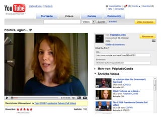 Das Dokument behandelt die Entwicklung des Web 2.0 und dessen Einfluss auf politische Bildung sowie die Partizipation der BürgerInnen im politischen Diskurs. Es wird dargestellt, wie Web 2.0-Plattformen wie Blogs, soziale Netzwerke und Videos die Kommunikation und den Austausch von Ideen fördern und die politische Meinungsbildung und -beteiligung beeinflussen können. Die Herausforderungen der digitalen Kluft, Medienkompetenz und die Notwendigkeit einer inklusiven Partizipationskultur werden ebenfalls thematisiert.