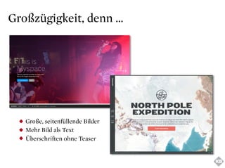 Das Dokument behandelt die Design-Trends 2013 und betont die Bedeutung von Großformatbildern, klaren Strukturen und reduzierten Inhalten für eine verstärkte Benutzeraufmerksamkeit. Es stellt fest, dass technologische Entwicklungen genutzt werden, um visuelle Inhalte transparenter und ansprechender zu gestalten, wobei Elemente wie Flatdesign und intuitive Navigation im Vordergrund stehen. Zudem wird der kreative Umgang mit Markenidentität und Social Media hervorgehoben, um die Nutzererfahrung zu optimieren.