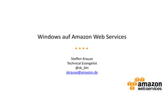 Das Dokument beschreibt die Nutzung von Windows-Servern auf Amazon Web Services (AWS), einschließlich Lizenzierungsoptionen, Infrastrukturdetails und wichtigen AWS-Diensten wie EC2 und VPC. Es weist auf die Möglichkeit hin, bestehende Microsoft-Lizenzen zu verwenden, und bietet Ressourcen für die Implementierung von Microsoft-Anwendungen auf AWS. Zudem wird die VDI-Lösung Amazon Workspaces als verwaltete Desktop-Umgebung hervorgehoben.