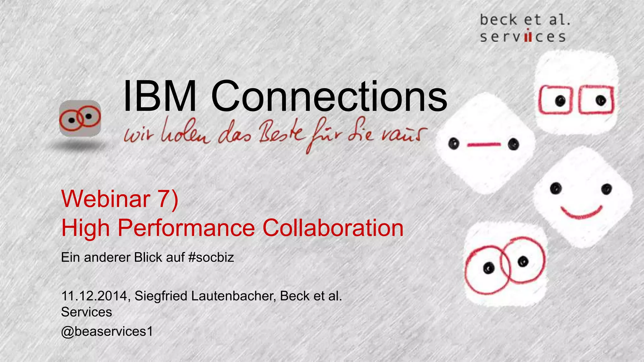 Das Webinar behandelt, warum einfache soziale Netzwerke für Unternehmen nicht ausreichend sind und skizziert essentielle Merkmale von Hochleistungsorganisationen (HPO). Es wird betont, dass gezielte Zusammenarbeit und die Einbindung von Mitarbeitern und Kunden in den digitalen Arbeitsplatz zentral für den Erfolg sind. Beck et al. Services bietet Beratungsdienste an, um Unternehmen bei der digitalen Transformation zu unterstützen.