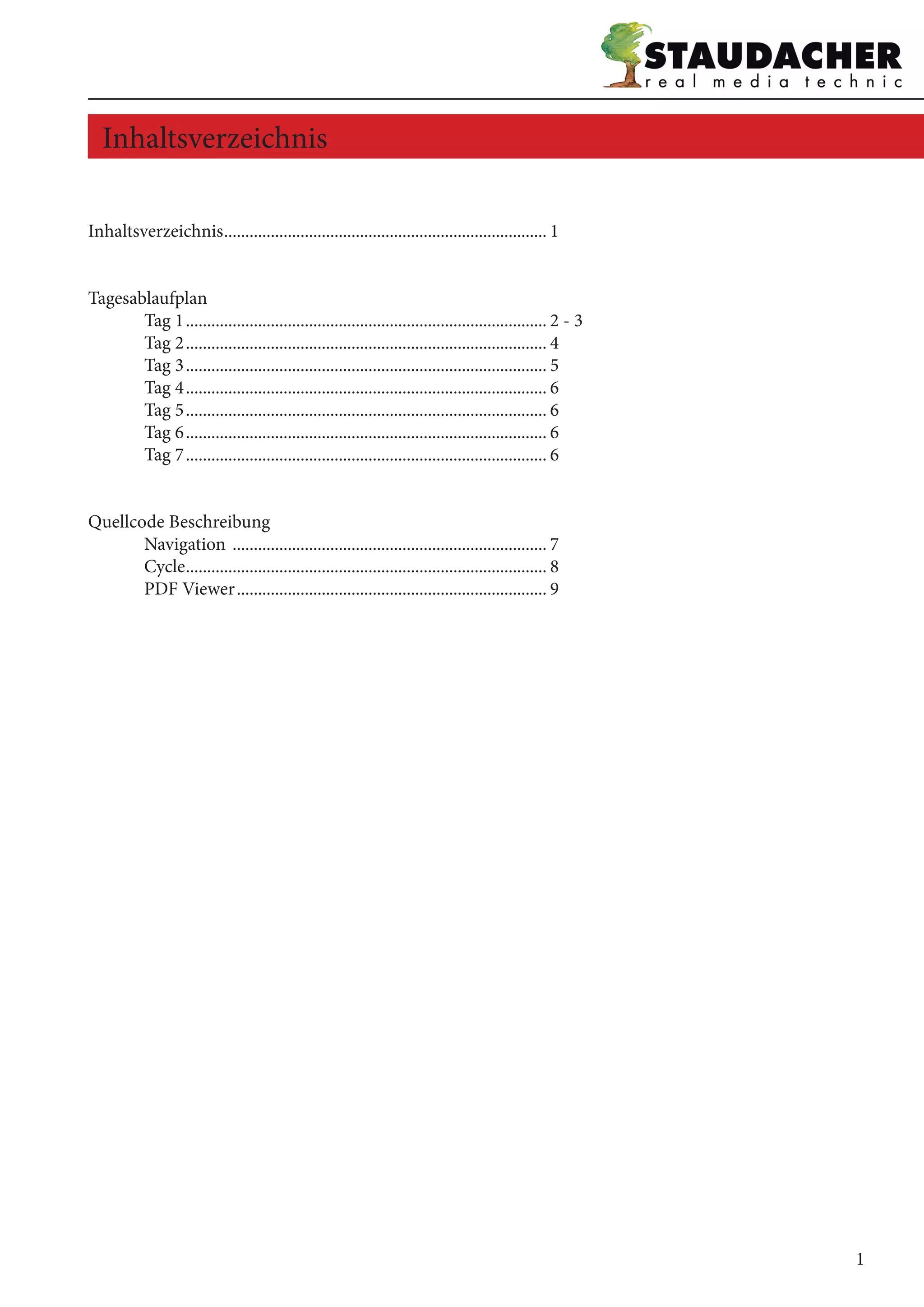 Das Dokument ist eine Anleitung zur Durchführung eines Ausbildungsprogramms in der Abteilung Nürnberg, welches einen detaillierten Tagesablaufplan über sieben Tage sowie technische Informationen zu Navigation, Bildwechsel und einem PDF-Viewer umfasst. Jeder Tag ist durch spezifische Aufgaben wie Ideensammlung, Designumsetzung und Fehlerbehebung gekennzeichnet. Darüber hinaus werden Programmierdetails zu CSS, Bildwechselmechanismen und die Integration eines PDF-Viewers erläutert.