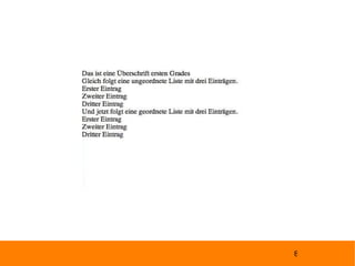 Das Dokument behandelt die Flexibilität des Internets und die Herausforderungen bei der Entwicklung von Webseiten, betont die Bedeutung von Inhalten über Layout und die Notwendigkeit, Barrierefreiheit zu integrieren. Es werden Probleme mit Browser-Kompatibilität, die Rolle von Frontendentwicklern und die Notwendigkeit einer klaren Kommunikation zwischen den Projektbeteiligten angesprochen. Zudem wird auf die Wichtigkeit von semantisch korrektem HTML und CSS hingewiesen, um zugängliche und benutzerfreundliche Webseiten zu erstellen.