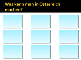 Das Dokument behandelt verschiedene Aspekte eines möglichen Urlaubs in Österreich, einschließlich Fragen zur Sprache, Klima und Sehenswürdigkeiten. Es beschreibt persönliche Erfahrungen einer Reise nach Österreich, die positiv bewertet wird, sowie die Verwendung von um...zu und damit für die Bildung von Nebensätzen im Deutschen. Darüber hinaus werden Aktivitäten wie Skifahren und Wandern genannt, zusammen mit Erklärungen zu deren Verwendung im Kontext von Zielen und Bedingungen.