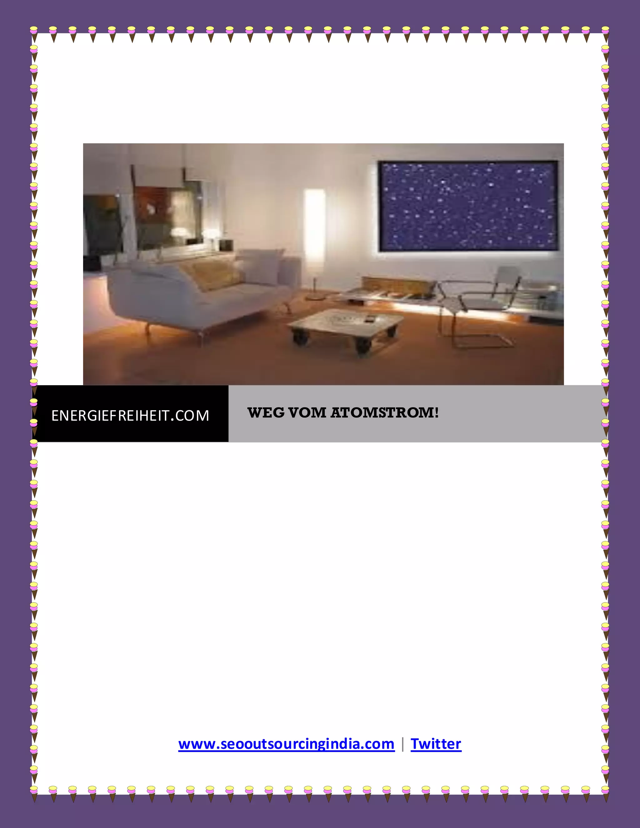 Das Dokument beschreibt die innovative Energievision von energiefreiheit.com, die dezentrale Energieunabhängigkeit durch Infrarotheizungen und regenerative Energiequellen fördert. Es wird betont, dass der Wechsel von herkömmlicher Heiztechnik zu Infrarotheizungen eine umweltfreundliche und kostensparende Lösung darstellt, die den Energiebedarf effektiv senkt. Zudem wird auf die Notwendigkeit hingewiesen, von Atomstrom und fossilen Energien abzukehren, um eine nachhaltige und wirtschaftlich tragfähige Energieautonomie zu erreichen.
