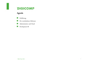 Das Dokument bietet eine umfassende Übersicht über die Neuerungen in SQL Server 2012, einschließlich der verschiedenen Editionen, Administration, Cloud-Entwicklung, Business Intelligence und dem neuen AlwaysOn-Feature. Es behandelt auch Verbesserungen in der Datenverarbeitung, die Unterstützung von Cloud-Szenarien sowie die Entwicklungen im Bereich der Datenbank-Entwicklung mit neuen Funktionen und Tools. Zudem werden spezifische Anwendungen und Werkzeuge zur Analyse, Berichterstellung und Datenmanagement vorgestellt.