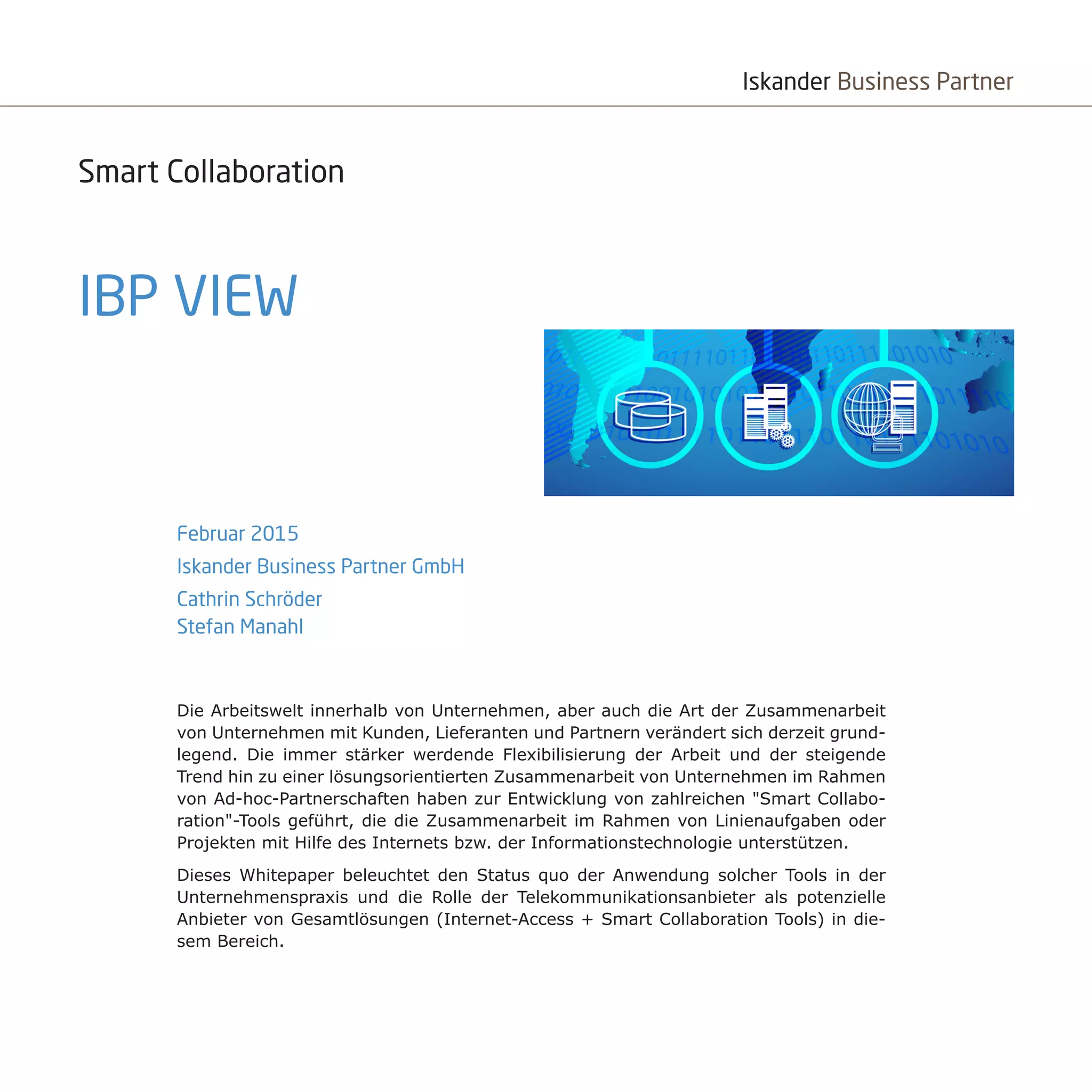 Das Dokument erörtert die Veränderungen in der Arbeitswelt und die Entwicklung von 'Smart Collaboration'-Tools zur Unterstützung ad-hoc Kooperationen in Unternehmen. Die Analyse basiert auf einer Umfrage unter IT-Verantwortlichen, die zeigt, dass 88% der befragten Unternehmen Smart Collaboration-Lösungen nutzen oder planen, wobei insbesondere virtuelle Besprechungen und mobile Office-Funktionalitäten populär sind. Dennoch wird die Nutzung solcher Lösungen oft als unzureichend betrachtet, wobei viele Unternehmen lediglich isolierte Anwendungen verwenden und Schwierigkeiten bei der Integration dieser Technologien in bestehende Systeme haben.