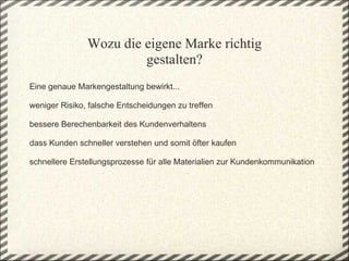 Das Dokument behandelt die Bedeutung der Markengestaltung, um Kundenvertrauen aufzubauen und die Identität einer Marke von innen nach außen zu entwickeln. Es diskutiert verschiedene Ansätze zur Markenführung, die sowohl physische als auch emotionale Aspekte der Markenidentität berücksichtigen. Der Fokus liegt auf der Schaffung einer einheitlichen Markenerfahrung über diverse Kommunikationskanäle hinweg, um Kundenbeziehungen zu stärken.