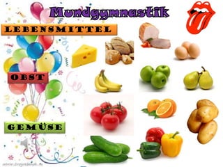 Das Dokument beschreibt die Vorbereitung auf eine Party, einschließlich der Einkaufsliste mit Lebensmitteln wie Obst, Gemüse und Fleisch. Es enthält Schritte zum Kochen und Decken des Tisches sowie einige Vorlieben von Personen bezüglich Essen und Getränken. Außerdem wird die Zubereitung von Erdbeervariationen und die Präsentation auf dem Tisch thematisiert.