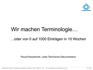 Das Dokument beschreibt den Aufbau einer firmenweiten Terminologie innerhalb von 10 Wochen und hebt die Bedeutung der Definition von Eintragsstrukturen sowie der Auswahl geeigneter Tools hervor. Es behandelt die grundlegenden Aspekte der Terminologie, deren Management und die erforderlichen Prozesse zur Erstellung und Pflege. Zudem werden verschiedene Tools und deren Kosten vorgestellt, um die Terminologie effizient zu verwalten.