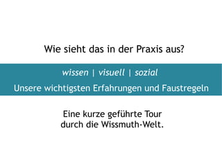 Das Dokument beschreibt das Konzept des Wiki-Prinzips zur Schaffung eines dynamischen Wissensnetzwerks, welches durch kurze, prägnante Erklärvideos und visuelle Hilfsmittel unterstützt wird. Es betont die Bedeutung kleiner, regelmäßiger Beiträge und den Einsatz von sozialen Medien, um das Wissen innerhalb einer Organisation effektiv zu verbreiten und zu verankern. Zudem wird die Notwendigkeit hervorgehoben, kommunikative Impulse zu fördern, ohne die Arbeit zu stören, und dabei ungenutztes Potenzial von Experten innerhalb der Organisation zu nutzen.