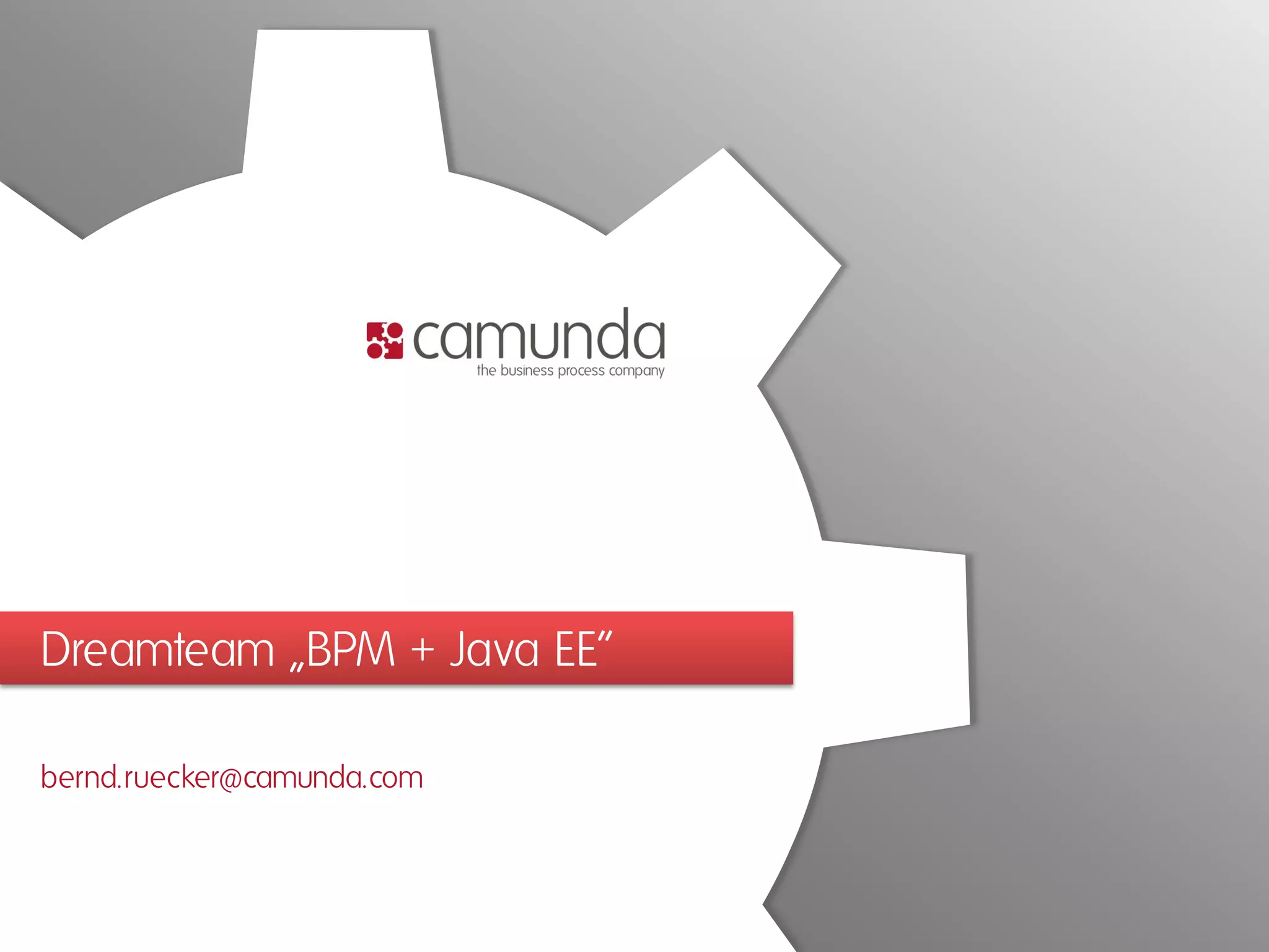 Das Dokument beschreibt die Implementierung einer Prozessanwendung mit BPMN 2.0 und Java EE 6, die innerhalb von fünf Stunden entwickelt werden kann. Es wird ein typischer Anwendungsfall diskutiert, bei dem Prozessautomatisierung notwendig ist, um Bestellungen zu bearbeiten und Kunden zu informieren, wenn Waren nicht verfügbar sind. Darüber hinaus werden verschiedene technische Aspekte, wie der Einsatz von CDI, EJB und einer Prozess-Engine, sowie die Unterstützung durch Camunda Services GmbH thematisiert.