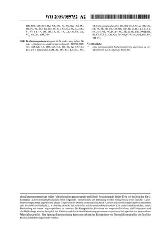 Das Dokument beschreibt ein Verfahren zur Verbindung dünner Metallschichten auf flexiblen Trägern, insbesondere für die elektrische Verbindung von Dünnschichtsolarzellen mit flexiblen Leiterplatten. Es umfasst Schritte wie das Entfernen der Trägerfolie von der Solarzelle und die Verwendung von Laserbehandlungen zum Bonden der Metallschichten. Der innovative Ansatz zielt darauf ab, die bisherigen Herausforderungen und Materialien zu umgehen und eine zuverlässige Verbindung zu schaffen.