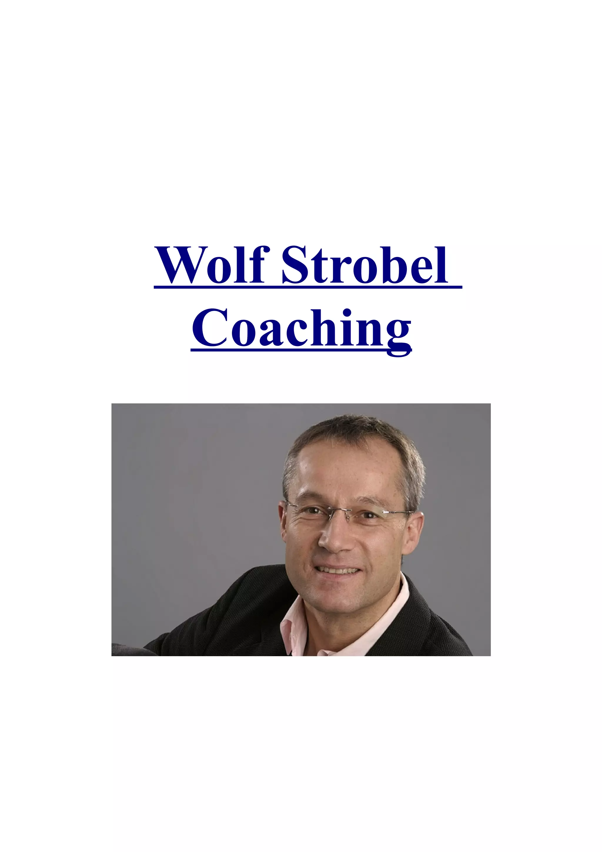 Wolf Strobel bietet seit 2007 Coaching und Beratung für Klein- und Mittelständische Unternehmen an, optimiert Prozesse und unterstützt bei Fragen der Unternehmensführung. Seine Firma, Top Consulting GmbH, ist gemäß europäischer Richtlinie zertifiziert und bietet die Möglichkeit, staatliche Förderungen in Anspruch zu nehmen. Strobel garantiert den Erfolg seiner Beratungen und führt regelmäßige Seminare sowie einen jährlichen Effizienzgipfel durch.