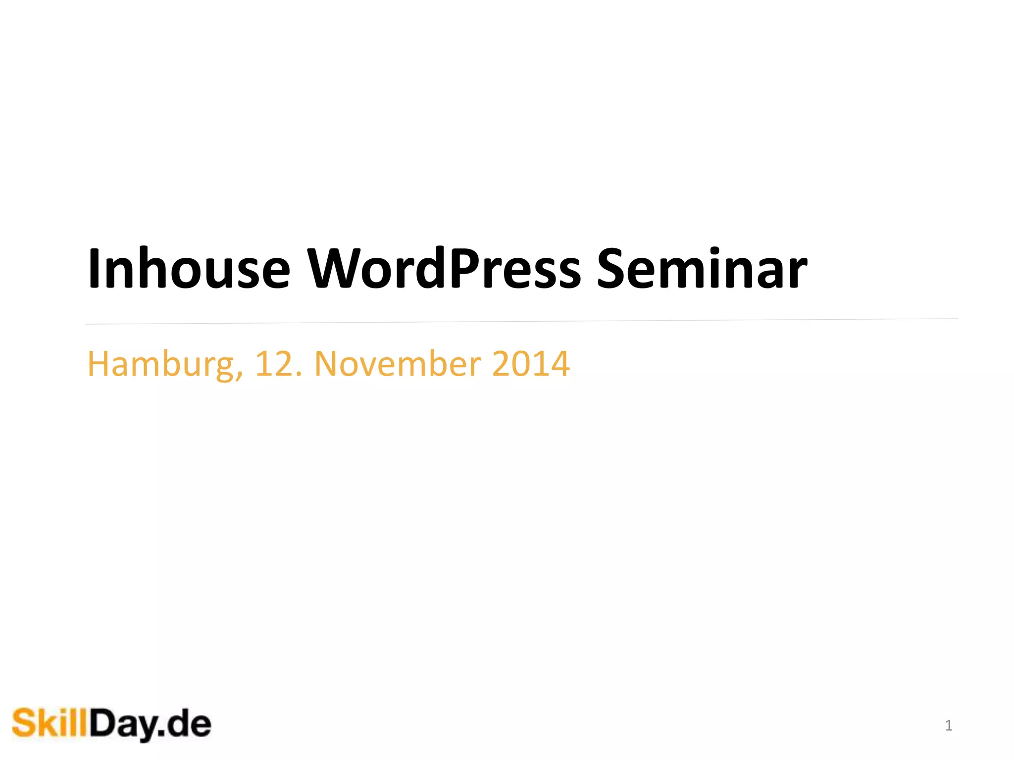 Die WordPress-Schulung in Hamburg im November 2014 vermittelt grundlegende Kenntnisse über WordPress, ein beliebtes CMS, das etwa 22% der meistbesuchten Websites nutzt. Die Schulung deckt Themen ab wie Installation, Dashboard-Navigation, die Erstellung von Beiträgen und Seiten, die Wahl und Installation von Themes sowie die Verwendung von Plugins zur Funktionserweiterung. Ziel ist es, den Teilnehmern zu zeigen, wie sie in vier Stunden ihre eigene Website erstellen können.