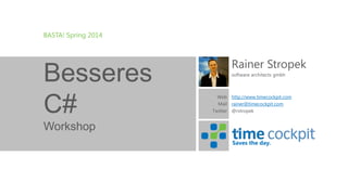 Der Workshop 'Besseres C#' thematisiert die Merkmale von hochwertigem C#-Code, einschließlich Testbarkeit, Code-Reviews und der Verwendung geeigneter Werkzeuge. Es werden Richtlinien für das Design von Klassenbibliotheken und Frameworks vorgeschlagen, darunter die Bedeutung automatisierter Tests und Szenario-getriebenes Design. Zudem wird auf Best Practices für Namenskonventionen, Member-Design und die Verwendung von generischen Sammlungen eingegangen.