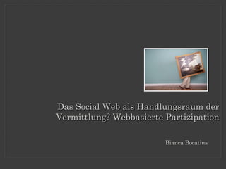 Das Dokument behandelt die museale Vermittlung im Internet und die Rolle von Social Media in diesem Kontext, wobei es die Möglichkeiten der webbasierten Partizipation und des aktiven Lernens durch Leser und Besucher betont. Es wird erläutert, wie Museen durch Social Media und Technologien wie Blogs, Wikis und Hackathons eine interaktive und partizipative Umgebung schaffen können. Beispiele aus Deutschland und Großbritannien werden genannt, um verschiedene Ansätze und Angebote der musealen Vermittlung aufzuzeigen.