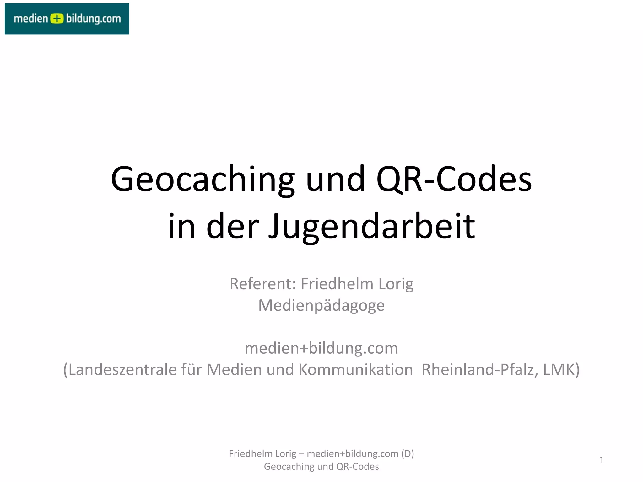 Das Dokument behandelt die Anwendung von Geocaching und QR-Codes in der Jugendarbeit, insbesondere in Bezug auf didaktische Ansätze und praxisnahe Beispiele. Geocaching wird als digitale Schatzsuche beschrieben, bei der GPS-Koordinaten genutzt werden, während QR-Codes schnelle Informationen bereitstellen. Es wird auch auf die Verfügbarkeit von Smartphones und die Integration dieser Technologien in die Projekte eingegangen.