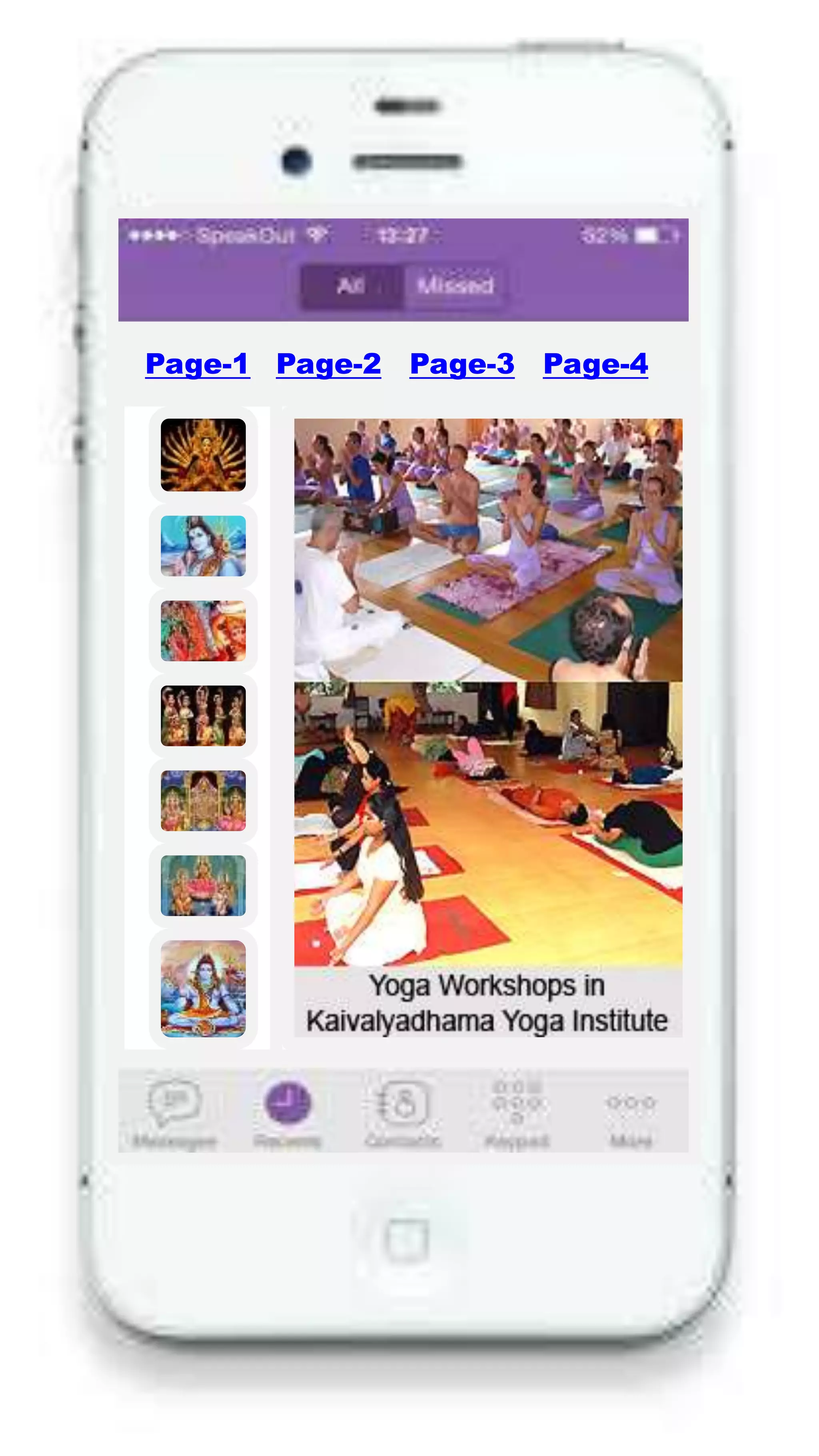 Das Dokument beschreibt eine Yoga-App mit mehreren Seiten und einer Windows-Homepage. Es wird mehrfach auf die Seitenstruktur der App und deren Inhalte verwiesen. Es scheint, als ob die App auf verschiedenen Plattformen verfügbar ist.