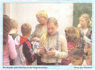 Die Kinder lesen in den Sagenbüchern und genießen die Geschichten. Das Bild zeigt die Kinder beim Schmökern. Der Fotograf ist Jan Clausen.