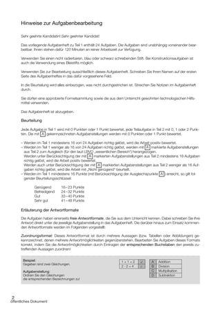 Das Dokument beschreibt die standardisierte kompetenzorientierte schriftliche Reifeprüfung in Mathematik, die aus 24 unabhängig bearbeitbaren Aufgaben besteht und eine Bearbeitungszeit von 120 Minuten hat. Es werden verschiedene Antwortformate vorgestellt, darunter Zuordnungs-, Multiple-Choice- und Lückentextformate, und die Beurteilung erfolgt nach einem Punktesystem, wobei mindestens 16 von 24 Aufgaben für eine positive Bewertung richtig gelöst werden müssen. Die Aufgaben decken verschiedene mathematische Themen ab, darunter rationale Zahlen, quadratische Gleichungen, Exponentialfunktionen und grundlegende Funktionen.